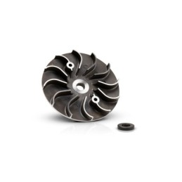 E una semipuleggia fissa con lavorazione diamantata sulla superficie di scorrimento della cinghia e con angolo ricalcolato per incrementare ulteriormente il range di cambiata. Questo elemento completa il Multivar e lo rende impareggiabile. Studiata per la linea dei variatori degli scooter, migliora ulteriormente la condizione di lavoro della cinghia di trasmissione. Non è un semplice accessorio, ma una parte molto importante per la durata di tutti gli organi della trasmissione. Le temperature che si producono allinterno dei carter dove lavorano i variatori con cinghie trapezoidali nei momenti critici sono proibitive ed alcune volte certe parti, come cinghie di trasmissione e rulli dei variatori, subiscono danni irreparabili. Vi sono casi nei quali i rulli potrebbero raggiungere il punto di fusione. Ventilvar oltre gli altri vantaggi ha una capacità di raffreddamento superiore alla semipuleggia originale, un risultato che la rende indispensabile per una guida sicura e sportiva.